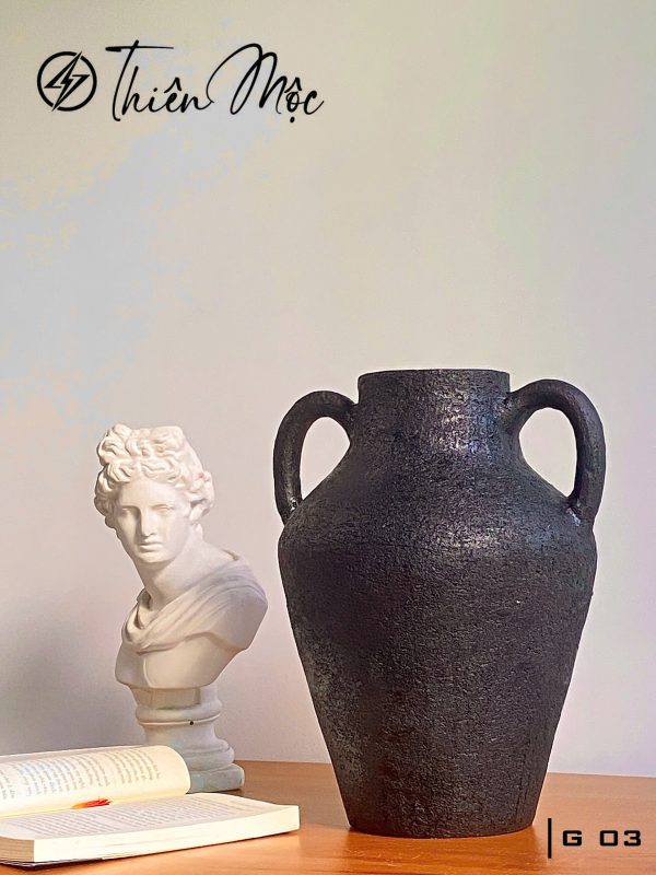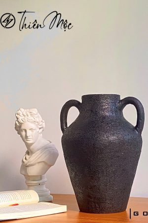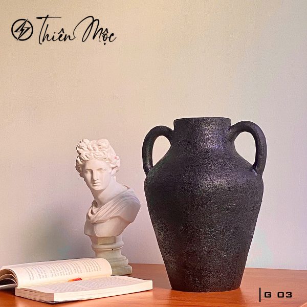 Bình gốm mộc Thiên Mộc G02 được tạo hình hoàn toàn bằng tay, không dùng bàn xoay và không tráng men, giữ nguyên vẹn vẻ đẹp nguyên sơ của đất gốm tự nhiên. Dáng bình tròn bầu hài hòa cùng bề mặt đen nhám mộc mạc mang đến cảm giác gần gũi, ấm áp, phù hợp với nhiều phong cách nội thất từ tối giản đến rustic.