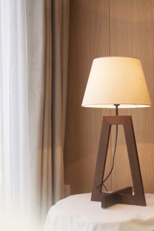 Đèn bàn decor B08, là phiên bản thu nhỏ của mẫu đèn đứng C09, mang trong mình sự hài hòa giữa thiết kế tối giản và tính ứng dụng cao. Khung đèn hình thang độc đáo kết hợp với thanh ngang dưới đế tạo thành cấu trúc vững chắc mà vẫn thanh thoát, giúp chiếc đèn giữ được vẻ nhẹ nhàng nhưng không kém phần chắc chắn.