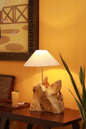 Mang thiên nhiên vào không gian sống của bạn với đèn bàn gỗ lũa thủ công độc đáo, kết hợp hài hòa giữa vẻ đẹp mộc mạc và sự tinh tế nghệ thuật. Phần chân đèn được tạo hình từ khúc gỗ lũa tự nhiên, kết hợp cùng chụp đèn vải đơn giản, mang lại ánh sáng ấm áp và cảm giác thư giãn cho mọi căn phòng.