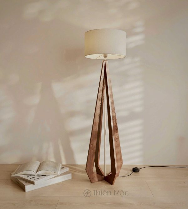 Thân đèn gồm phần trục đứng ở giữa bằng inox có nhiệm vụ kết nối và làm trụ đỡ cho phần gỗ xung quanh, giúp đèn chắc chắn hơn. Điều đó cho phép bốn phần gỗ của thân đèn toả ra bốn phía, đối xứng nhau, rồi chụm lại ở đỉnh, tạo ra hình dáng mà các khách hàng thân thiết của Thiên Mộc hay gọi là “đèn Kim Cương”. Với kết cấu như vậy, đèn cây C07 mang một vẻ sang trọng, tinh tế nhưng không quá cầu kỳ, hoa mỹ, nét đẹp đến từ sự hài hoà giữa truyền thống và hiện đại.